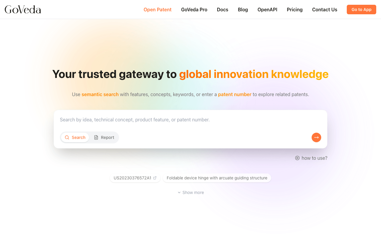 The GoVeda API gives you programmatic access to the same patent intelligence available in the web app: semantic search, prior art search, patent content retrieval, and novelty report generation. All responses are JSON.