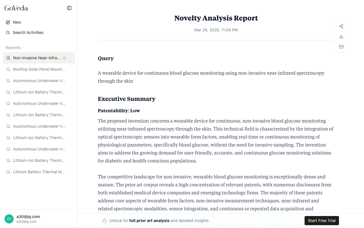 | Your own report, no Pro subscription | Preview only (first patent visible) |