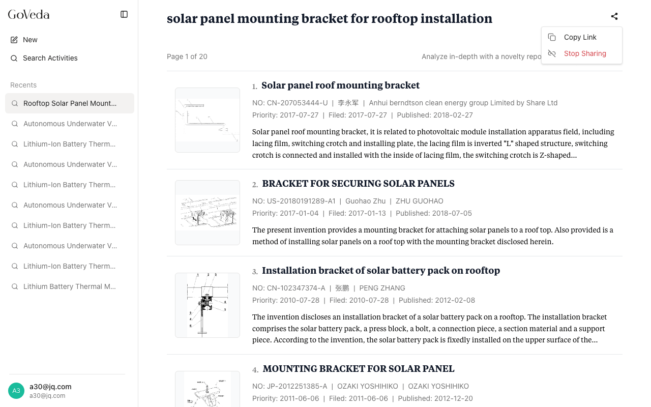 You can share a completed search with anyone by generating a share link. The recipient can view the results without signing in to GoVeda.